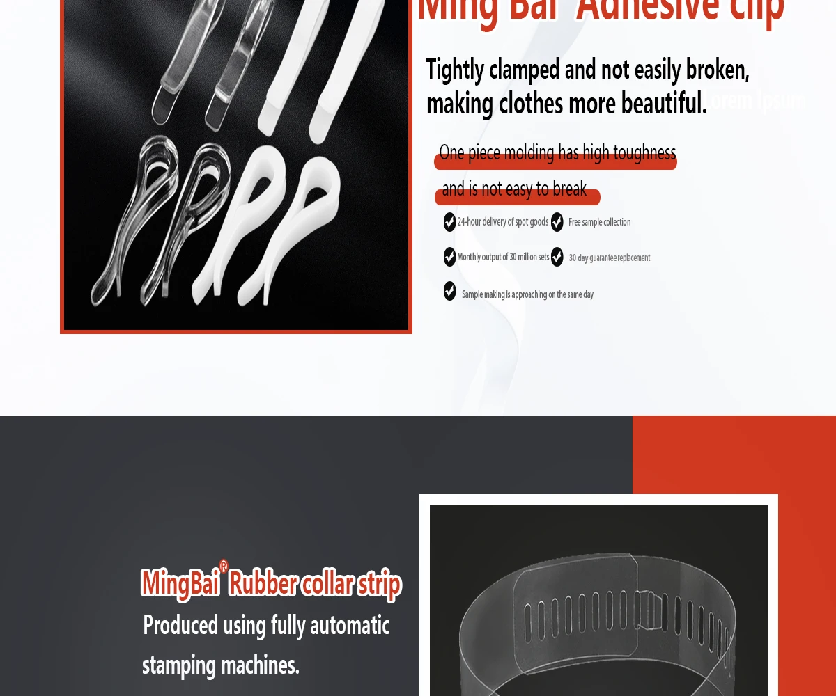 ผลิตภัณฑ์หลัก:คลิปหนีบเสื้อ, แถบพลาสติกปกเสื้อ, การเข้าพักปก, การสนับสนุนชั้นนำ, เสื้อกระดาษแข็ง